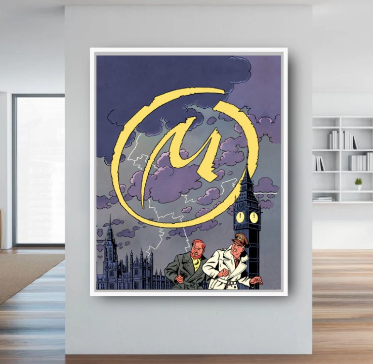 Œuvre d'Edgar P. Jacobs, ( 1956 ), une peinture d'ART en toile de polycoton Premium de 350 g/m² de qualité supérieure, montée sur un cadre en bois et équipée d'un crochet de suspension.