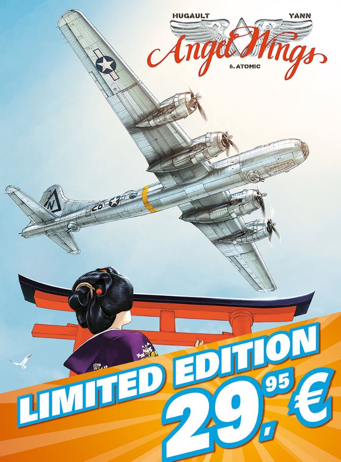 Verzamelaars en liefhebbers van het werk van Romain Hugault willen deze Luxe Editie absoluut niet missen! Verschijnt woensdag 11 december - Hardcover 'Angel Wings' deel 6 met andere covertekening - 1 Prachtige display van vliegtuigen - 1 A3 kunstdruk (andere versie) - oplage 444 exemplaren, OP=OP! Angela is eindelijk gearriveerd op Tinian Island, de enorme 'Coral Plane Carrier' die dienst doet als platform voor duizend B-29 Flying Superforts die dagelijks vliegen om Japanse steden te verpletteren onder een meedogenloos tapijt van bommen. ... Ze ontmoet Taaroa, haar Hawaiiaanse teamgenoot, die nu aan boord van een Lockeed Ventura vliegt. Voortgaand op haar onderzoek naar de oorzaken van de dood van haar zuster Maureen, slaagt onze heldin erin om Dora Dougherty, de teamgenoot van haar zuster, te ontmoeten en haar te ondervragen over de omstandigheden van het vreemde ongeval dat haar heeft gedood. Angel Wings is een Tweede Wereldoorlog-avontuur van topduo Yann en Romain Hugault (De Nachtuil, Edelweiss).
