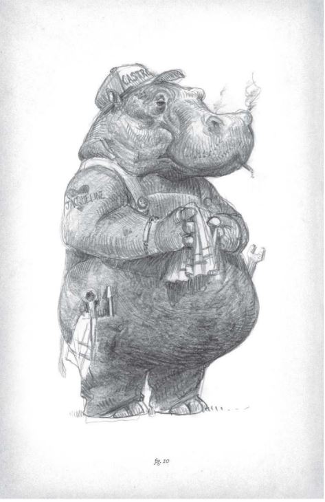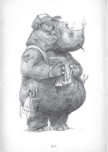 artbook door Gaulme Zoals velen ben ik opgegroeid met Beatrix Potters pratende bestiarium, Puss in Boots en Fantastic Mister Fox. Toen ik ongeveer zeven was, keek ik naar de kerstuitzending met films van Wolfgang Reitherman, een van de 'Nine Old Men' uit de Disney-animatiestudio's. Sindsdien heb ik de tekenaars altijd met verbazing gadegeslagen die met plezier de karakters van hun medemensen vastlegden en ze transformeerden naar dierlijke fysieken. Ieder dier werd zorgvuldig uitgekozen om menselijke karaktereigenschappen weer te geven. Als ik denk aan die pratende dieren die me als kind betoverden, herinner ik me realistische, plausibele wezens met echte gezichten en authentieke uitdrukkingen. Het waren personages die ik graag had willen leren kennen. Vele jaren later begon ik me op mijn beurt voor de lol te verdiepen in deze 'dieren'. (maar zijn ze dat echt?) Ik bedank mijn kinderen dat ze me gevraagd hebben om een groot aantal van hen te scheppen, om hen te vermaken. Ik zal heel blij zijn als de enkele personages die hier worden getoond er op hun beurt in slagen jou een beetje te laten dromen...' Armel Gaulme The BESTiary