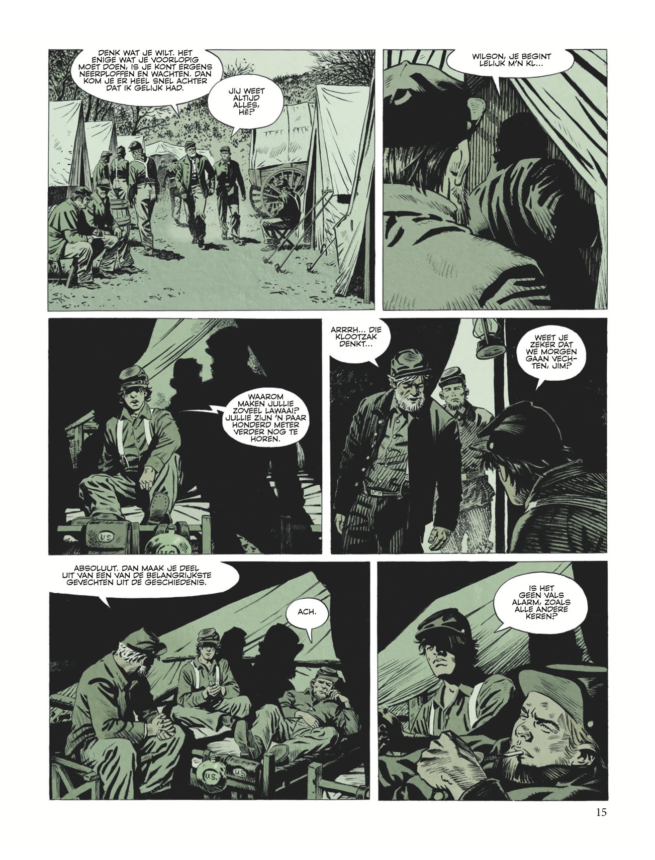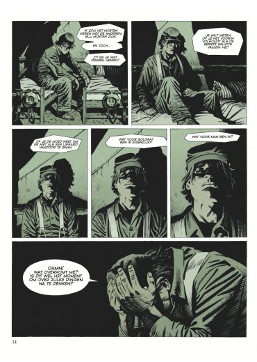 De combinatie van het enigszins langdradige, kabbelende verhaal en de sombere, deprimerende omstandigheden waarin de soldaten verkeren, maakt het verhaal soms wat slepend. Het was voor mij vaak een uitdaging om geboeid te blijven. Na enkele pagina's lijkt er ook weinig variatie in de tekeningen te zitten, wat het leesplezier niet ten goede komt.
