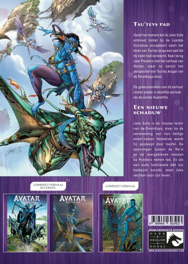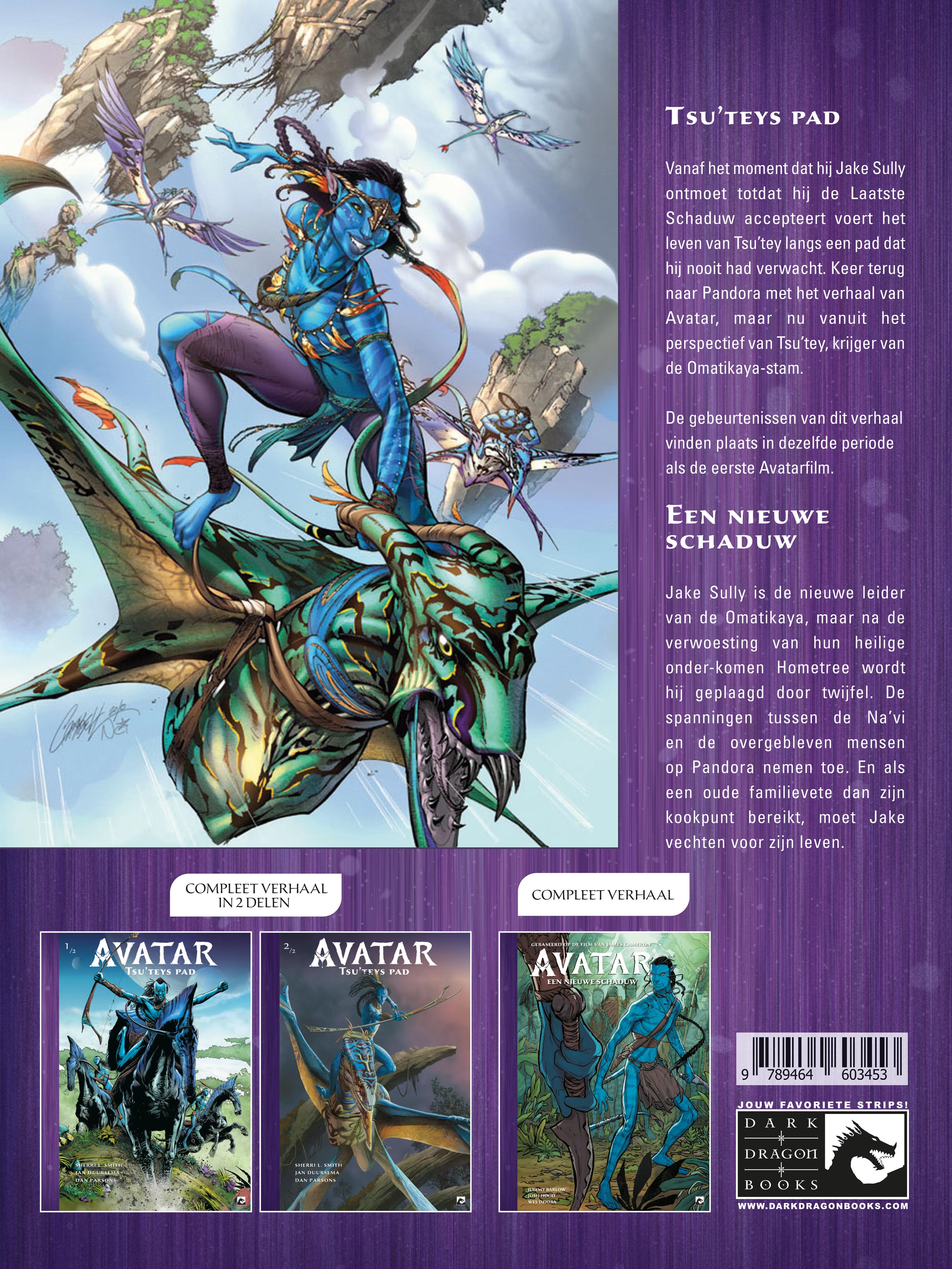 Het leven van Tsu’tey, trotse strijder van de Omatikaya clan, verloofde van Neytiri, wordt op zijn kop gezet door de komst van Jake Sully van de mensen. Dit verhaal onthult gebeurtenissen waarnaar slechts zijdelings werd verwezen in James Camerons kaskraker Avatar! Avatar Collector Pack Tsu Tey’s pad 1+2 Een nieuwe schaduw ISBN: 9789464603453 3 x Softcover 2 x 72 blz. + 1 x 80 blz.