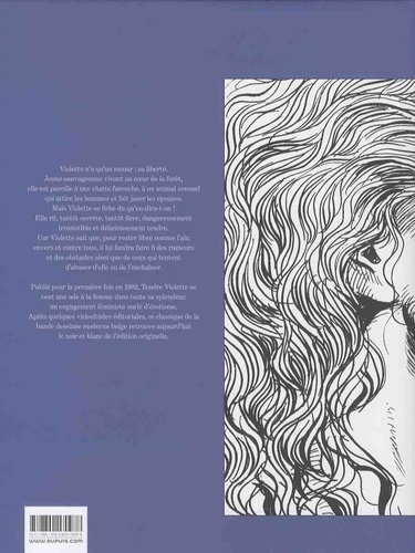 Fière et secrète, irrésistiblement libre, Violette n'écoute personne d'autre qu'elle-même. Elle, la belle d'aucun homme, n'a que peu l'intention de se laisser guider par les calomnies des uns et les jalousies des autres. Les insultes des épouses aigries et les rumeurs grivoises n'atteignent guère son coeur d'alouette. Pourtant, un événement inattendu risque de perturber son existence sylvestre, entre la douceur de la vie dans les bois et la curiosité à l'égard du monde moderne. En 1982, Jean-Claude Servais déclarait son amour à la femme tendre et libérée, à sa sensualité sauvage et à sa fierté farouche : Violette était née. Son héroïne, qu'il voulut forte et indépendante, se moque des qu'en-dira-t-on, des rumeurs et des sournoiseries de la société bien-pensante. L'on retrouve dans ce deuxième volume de l'intégrale en noir et blanc tout l'esprit audacieux d'un roman graphique qui embrasa ses lecteurs. Ode naturaliste à la femme dans toute sa splendeur, Tendre Violette n'a décidément rien perdu de sa fraîcheur.