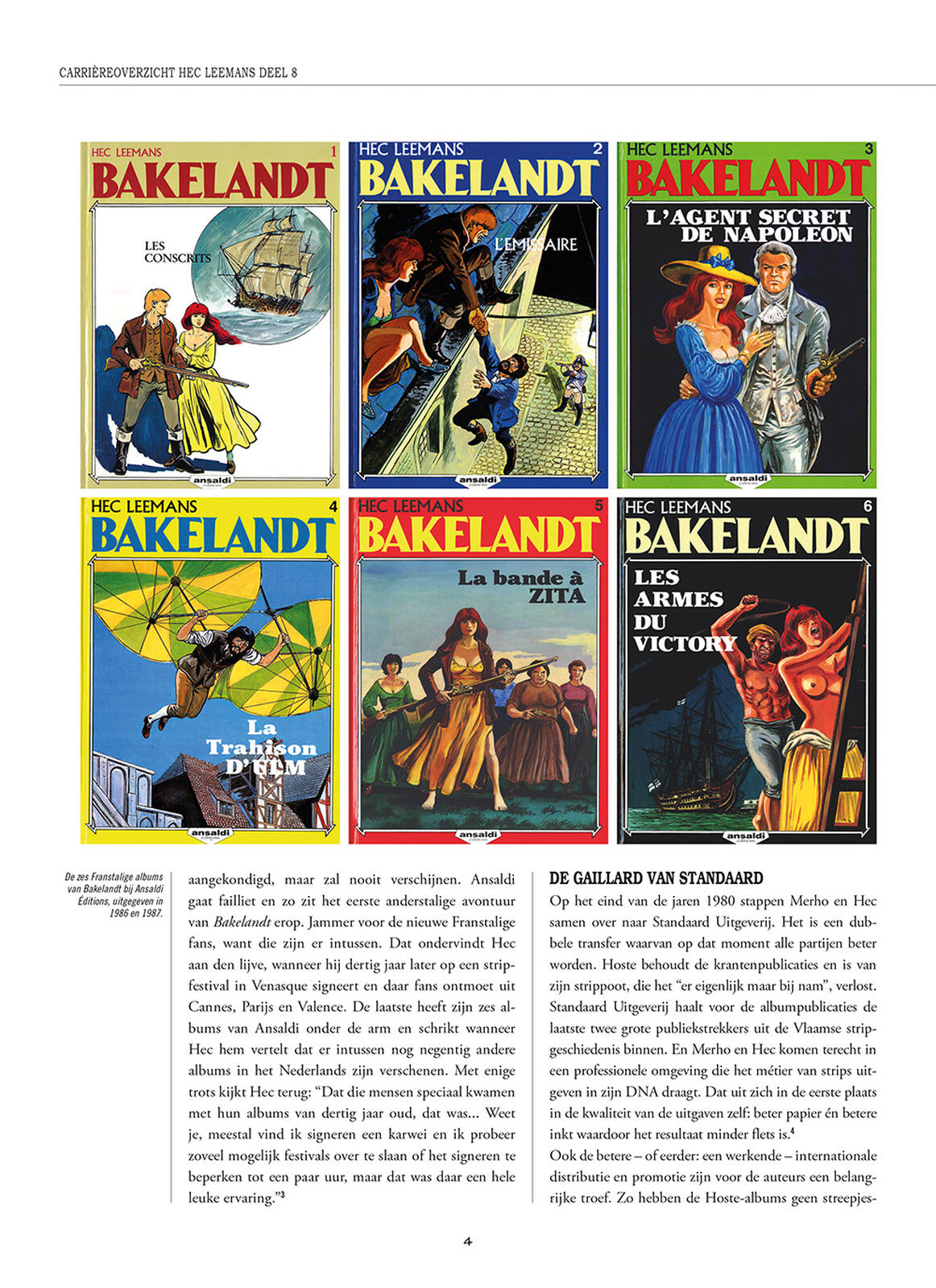 De integrale reeks van Bakelandt zit in zijn tweede jaargang en sluit 2021 af met deel 8. Daarin staan de verhalen : De Schone en het Beest, De Zwarte Weduwe, De Pacificateur, Zita op de Planken en Drie Vrienden, Drie Vijanden, de reguliere delen 36 tot 40. Claus D. Scholz, de latere tekenaar van De Rode Ridder, levert in Drie Vrienden, Drie Vijanden zijn eerste bijdrage aan Bakelandt. Over Scholz wordt al verteld in het dossier van Bakelandt integraal 7. Het achtergronddossier focust in deel 8 op Bakelandt in andere talen en dialecten, Hec Leemans' vriendschap met François Walthéry, mogelijkheden tot ontspanning en vermaak in de tijd van Bakelandt en voorafgaand aan elk verhaal staan ook heel wat strip- en historische weetjes.