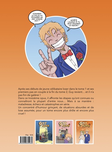Après ses débuts de jeune célibataire loser dans le tome 1 et ses premiers pas en couple à la fin du tome 2, Guy revient... et il n’a pas fini de galérer ! Dans ce troisième opus, il affronte les étapes qu’ont connues ou connaîtront la plupart d’entre nous... Mais à s a manière : maladresse, échecs et catastrophes en série. Un concentré d’humour grinçant, de situations absurdes et de lose assumée, pour un tome encore plus drôle et encore plus cruel !