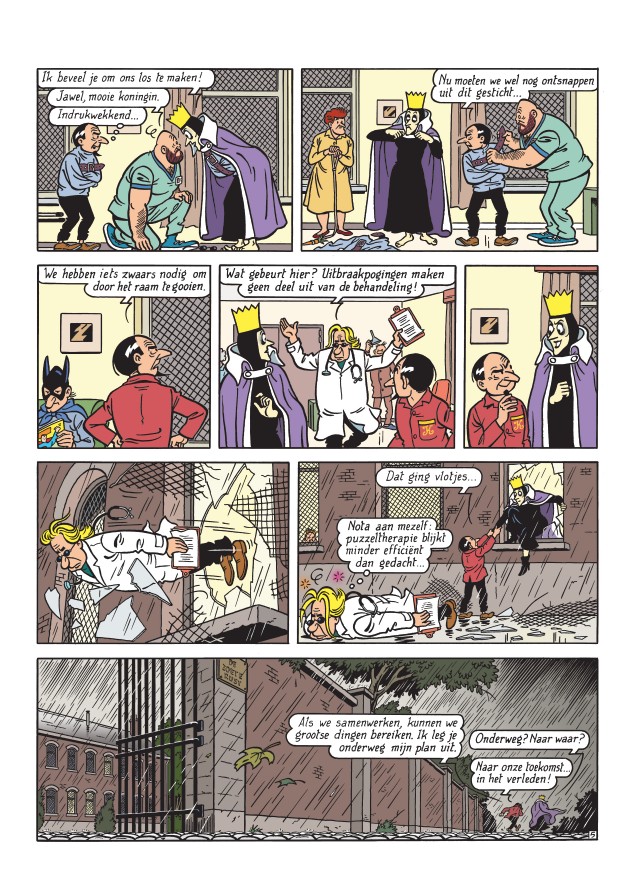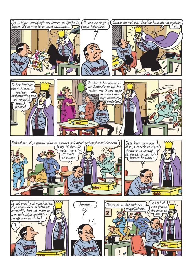 Krimson est d'une humeur massacrante. Après avoir une fois de plus perdu face à Bob et Bobette, le super-méchant est interné dans l'établissement psychiatrique La Douce Quiétude. Il y fait la rencontre de la Reine du Pays Souterrain, elle aussi enfermée après de nombreux échecs contre Gil et Jo et leurs amis. Les deux vilains décident d’unir leurs forces. Ils s’évadent de l’institution et fuient vers le passé grâce à la machine à remonter le temps du professeur Barabas. Sous hypnose, le professeur leur fournit ses inventions, leur permettant de prendre le pouvoir dans le village ensoleillé du Moyen Âge. Ils se proclament souverains du Pays Souterrain.
