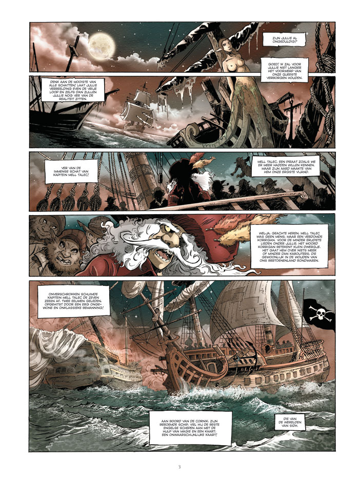 Score moyen 5 / 5Aanvankelijk was ik een beetje terughoudend aangezien het piraten thema me niet zo aanspak, maar na het lezen van het eerste deel was ik direct verkocht en kan haast niet wachten op het volgende deel. De prachtige tekeningen en een goed geschreven scenario maken het verlangen naar een volgende boekdeel des te groter.