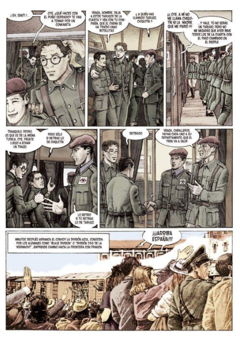 Pendant la Seconde Guerre mondiale, l’Espagne envoie des volontaires sur le front de l’Est : la Division Bleue, combattant aux côtés des Allemands. Santi, un jeune communiste, s’infiltre parmi eux avec une mission secrète. Sa tâche : transporter des négatifs contenant des informations sur un projet atomique allemand. Tandis qu’il affronte l’hiver russe, il oscille entre camaraderie, idéologie et le danger d’être démasqué. Son voyage le mène de Madrid à Berlin, jusqu’aux lignes glacées du front, où chaque rencontre peut être fatale.