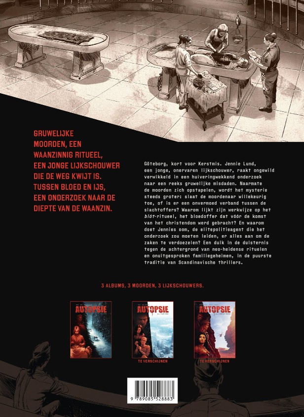 Les trois albums de la série conceptuelle Autopsie paraîtront en avril, mai et juin et racontent à chaque fois l’histoire d’un autre médecin légiste, d’un autre meurtre atroce et dans un décor différent, de Göteborg à Chicago, jusqu’à une région désolée de l’Australie occidentale. Chaque album constitue une histoire complète, entièrement autonome, avec pour seul fil conducteur un médecin légiste comme personnage principal et une enquête soutenue par une ou plusieurs autopsies.