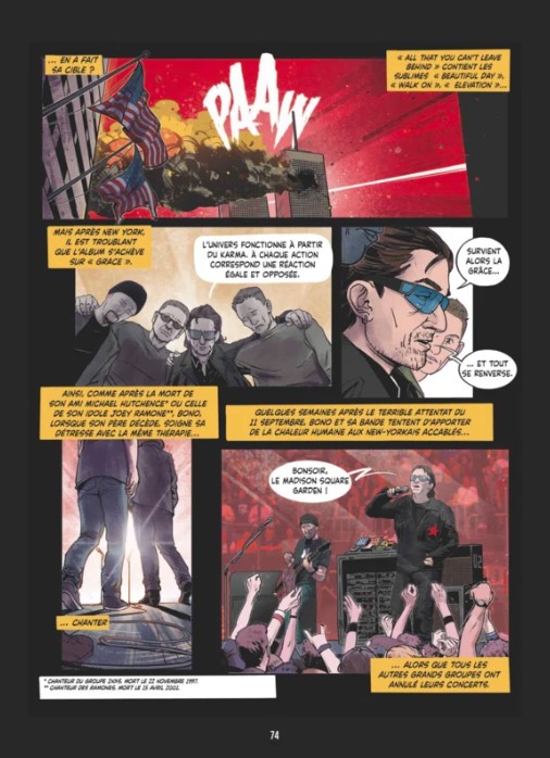 La bande dessinée ne montre pas seulement les étapes musicales majeures, mais aussi les idéaux qui ont fait la grandeur de U2 : leur engagement pour les droits humains, leur foi en l’amour et en l’espoir, et leur quête constante de renouveau.