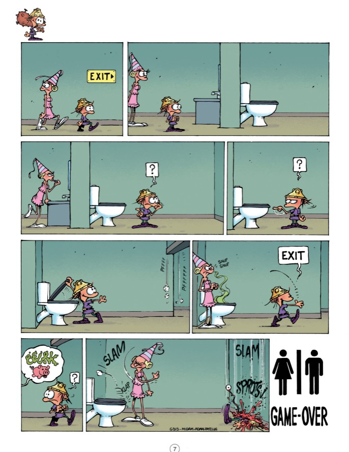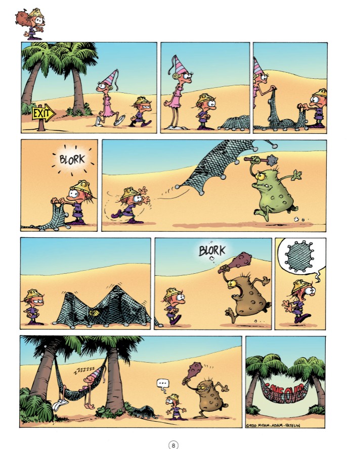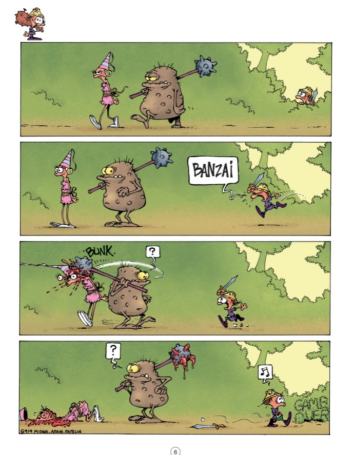 Dans Game Over, tout repose sur Petit Barbare (pas toujours très futé) qui doit délivrer une princesse (elle non plus pas toujours très futée). À partir de ce point de départ simplissime, Midam – le génie derrière Kid Paddle – et son équipe imaginent sans cesse des situations inattendues et de plus en plus délirantes.