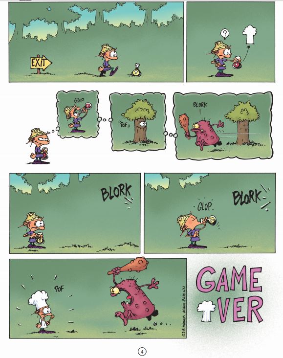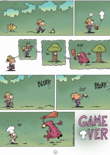 In de virtuele wereld van Kleine Barbaar vallen de lijken bij bosjes. Gespietst, verscheurd, verpletterd of opgevreten? Keuze zat! Telkens weer leidt het tot een even wrede als hilarische game over ... Kleine Barbaar is de ultieme antiheld in deze hilarische spin-off van Kid Paddle. Eenvoudiger wordt een videogame niet: een kleine held met twee linkerhanden, een domme prinses, hysterisch en bijna even onhandig als haar redder, en dan een bende Blorks, de ene nog lelijker, wreder en gemener dan de andere. Zij hebben maar een doel in hun leven: voorkomen dat de held de prinses bevrijdt. En als ze die zo nu en dan kunnen afslachten, gaan ze zich niet inhouden. Hun samenspel leidt naar het onvermijdelijke ‘Game Over’ waarop elke gag uitmondt. Op dat ritme serveert Midam een symfonie aan woordeloze en meedogenloze gags die steeds hun doel treffen.