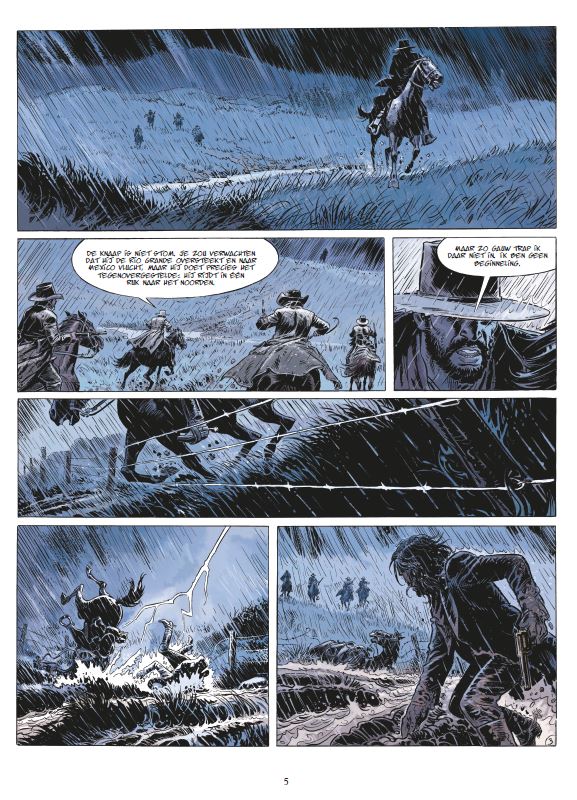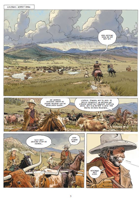 Voor de Fans van Blueberry en Undertaker! Meesterwerk door een toptrio van auteurs Bec voor het scenario, Michel Rouge voor de tekeningen en Corentin Rouge voor de inkleuring. het Dreamteam voor een spetterende nieuwe reeks waarin we nog vele delen verwachten.... Gunfighter Bec ( Promethee, Olympus Mons,) schrijft hier zijn eerste “ echte werstern” die hij reeds 5 jaar terug schreef. Hij is zelf naar Michel Rouge ( de Hemelsluizen, Comanche,…) gegaan om hem voor te stellen Gunfigher te tekenen. Daarbij krijgt hij ook nog hulp van Corentin Rouge ( Rio, XIII mysterie) die de inkleuring vooral op zich nam. Drie Grote namen die deze strip zeker tot een topper maken. De uitdaging van Bec om de “ bad guys” toch sympathiek te doen overkomen is hier duidelijk gelukt. Een echte, klassieke western zoals we die graag lezen, een cocktail van Comanche, Blueberry, Mac Coy, Jonathan Cartland… . Bec zorgde voor een “ijzerdraad” sterk scenario waarin wraak, actie, vriendschap, verraad, familiy business, mysterie, geheimen…. zorgen voor een adembenemend eerste album. Origineel is ook dat Bec in deze reeks de cowboys wil voorstellen zoals ze echt waren en niet zoals in de hollywood films. Cowboys waren meestal arm, hadden zelf geen scheermesjes ( vandaar dat Bec vroeg aan Rouge om de cowboys te tekenen met baarden), meestal was zelf het paard, colt en hoed zelf niet van hen. Waren behandeld als paria’s, stonken, verdienden 1 dollar per dag… In het eerste deel maken we kennis met de hoofdpersonages en met hun problemen, hun woede, hun geheimen, hun karakters en stilaan worden de intriges en richtingen duidelijk waardoor we bijzonder benieuwd zijn naar de volgende delen. Alle ingrediënten zijn hier aanwezig om er een echte succes reeks van te maken. Altijd goed. Soms ruw. Nooit Ploertig. Ergens op de vlaktes in Arizona. Terwijl de 'longhorns' (Amerikaanse runderen) ruimte nodig hebben doe de prikkeldraad voor de eerste keer zijn intrede. het touw van de duivel, zorgt ervoor dat de conflicten tussen de grootgrondbezitters escaleren. De ranchers treffen plots een man aan die bewusteloos is en die zich vastklampt aan zijn colt.... Wie is die Mysterieuze Gunfighter????