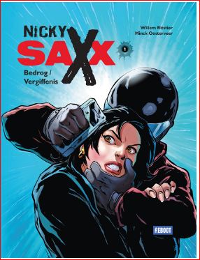met boekenlegger en ex-libris Samen met haar vriendin, Elja, beleeft Nicky Saxx de meest uiteenlopende avonturen. Vanuit haar vuurtoren runt ze Kamer 666, een bedrijf dat gespecialiseerd is in het oplossen van lastige zaken. In ‘Bedrog’ reist Nicky samen met Elja naar Bolivia, waar blijkt dat er een val voor haar is opgezet. Ook in ‘Vergiffenis’ zijn de nodige complicaties aanwezig, wanneer Elja’s tante onverwachts sterft. Het lijkt op een natuurlijke dood, maar niet iedereen gelooft daar in. Nicky en Elja gaan op onderzoek uit en stuiten op een heus familiegeheim. Om lezers van zowel het eerste uur als de jongere generatie kennis te laten maken met een reboot van de stoere Nicky Saxx, heeft Reboot Comics de zwart-witte krantenstrip van Minck Oosterveer en Willem Ritstier volledig ingekleurd en van nieuwe lettering voorzien.