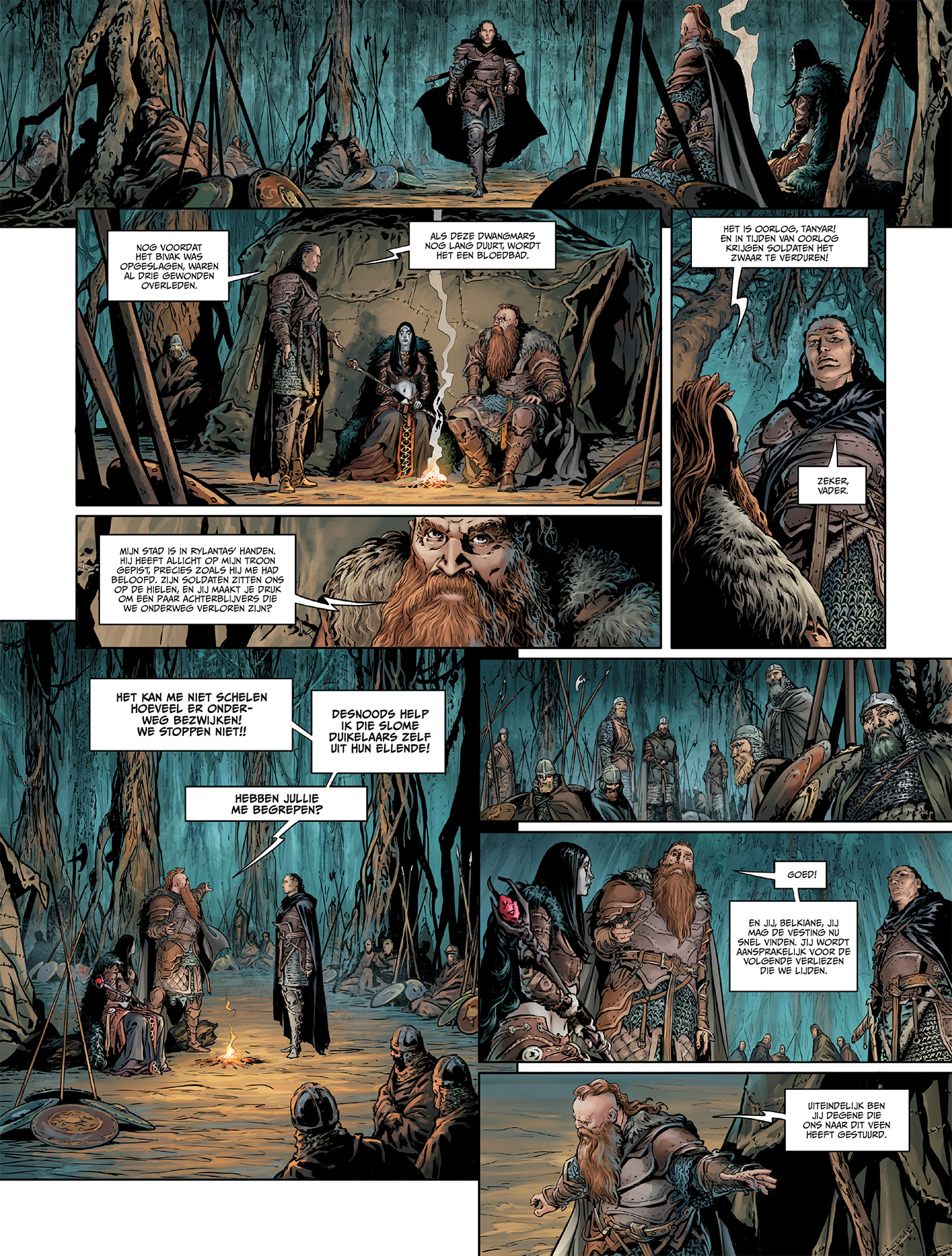 Après avoir abandonné sa ville dévastée, le roi Huguart s’enfuit avec ses derniers soldats et Belkiane vers une forteresse abandonnée. Là, ils découvrent les restes d’une troupe massacrée et une salle scellée contenant un ancien grimoire.