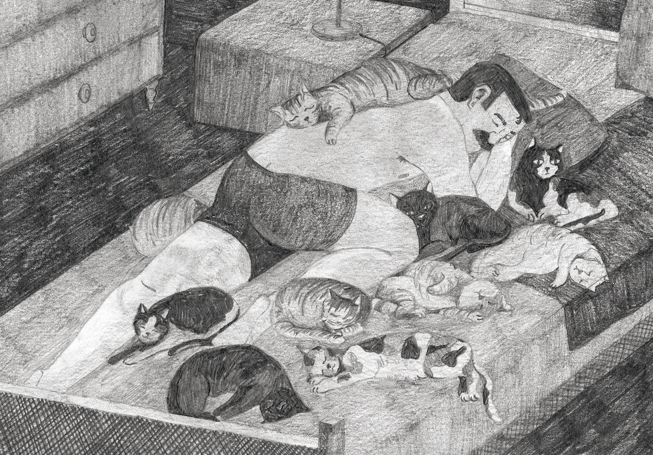Le jour, El Gato prépare des tacos ; le soir, il attrape les balles en tant que catcher. Une journée ordinaire faite de saveurs, de sueur et de rêves, capturée au crayon en format large par Nora Van Huychem.