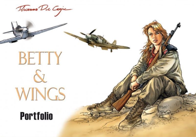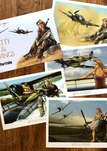 Portfolio met 4 A4-illustraties, elk met Betty en een vliegtuig. 250 genummerde en gesigneerde exemplaren Portfolio formaat 30 x 21 cm 4 genummerde en gesigneerde illustraties