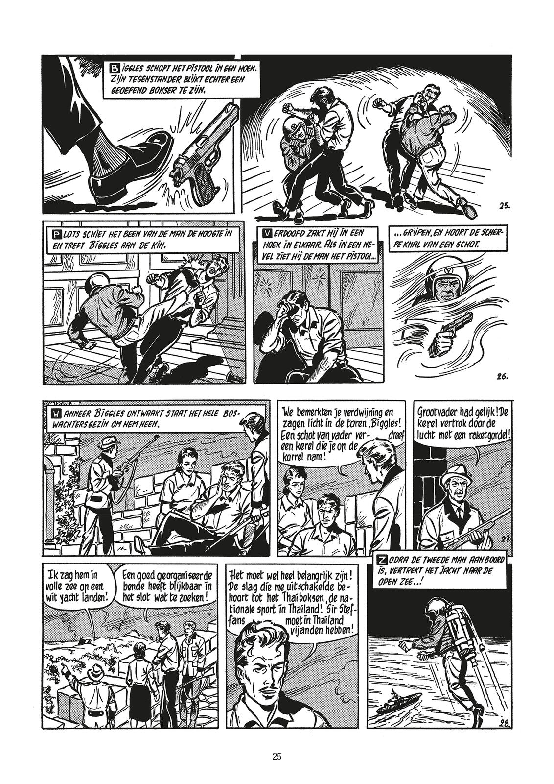 In 1965 start Willy Vandersteen, op vraag van Standaard Uitgeverij, een spannende avonturen- en spionagestrip op met majoor James Bigglesworth in de hoofdrol. Hij ontleent dit personage aan de jeugdboekenreeks van de Engelse schrijver-piloot W.E. Johns. Tijdens zijn opdrachten wordt de squadron leader en onkreukbare agent van de International Air Police bijgestaan door zijn vrienden Algy en Ginger. Standaard Uitgeverij bundelt alle 21 verhalen nu voor het eerst in lijvige integrales mét een achtergronddossier. Avonturen in dit deel: Ontvoering in Thailand, Operatie spacefighter, In Tibet, Basis op Kwan-tia en De valschermspringers.
