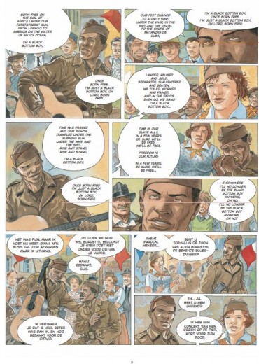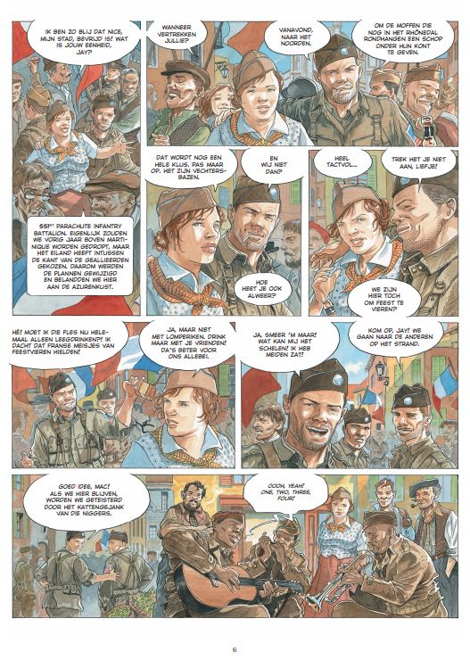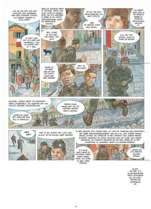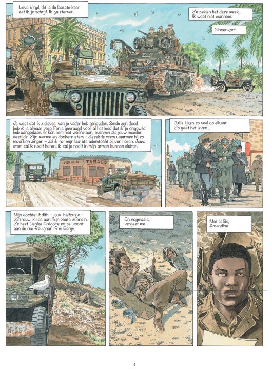Enkel voor onze trouwe klanten een ex-libris gesigneerd door de auteur. zeer beperkt op slechts 50 exemplaren voor de eerste aankopers, dus wees er snel bij! Augustus 1944. Nice viert feest, de Zuid-Franse stad is eindelijk bevrijd. In de uitgelaten sfeer belandt Virgil, een jonge Afro-Amerikaanse soldaat, in de armen van een jonge blanke verpleegster. Dat is niet naar de zin van Jared, een andere soldaat, die misprijzend kijkt naar het geflikflooi van de zwarte jongeman en de blanke vrouw. Ondanks een flink pak rammel moet Virgil later toch zij aan zij vechten met Jared. Een ontmoeting tussen twee werelden die veel minder ver uit elkaar blijken te liggen dan op het eerste gezicht leek… er verschijnt ook een cd. Dit zijproject is niet bedoeld om de muziek en het afspelen van het album te synchroniseren, dat werkt niet in strips, maar om het universum van Virgil Burdette te voeden, een van de twee hoofdpersonages wiens vader een bluesman was. Getalenteerd.