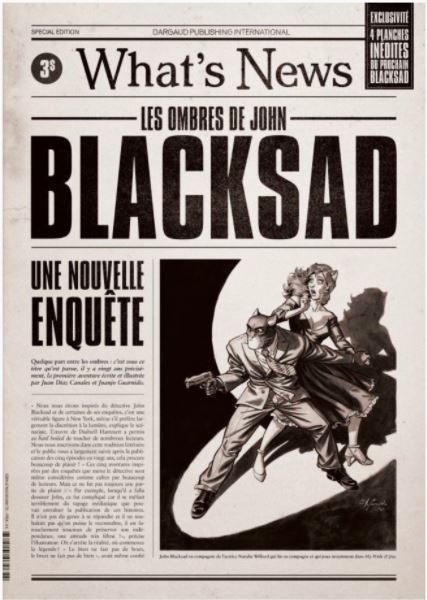Verschijnt enkel in het Frans beperkte hoeveelheid Vraag de speciale editie van 'What's News' aan! Je ontdekt exclusief achter de schermen van de volgende twee 'Blacksads' met onthullingen van de auteurs zelf, niet-gepubliceerde foto's en tekeningen, enz. Dit unieke nummer van 'What's News', een krant waarvoor Weekly als journalist samenwerkt, wordt een heuse vooruitblik op deze langverwachte cultreeks van het jaar 2021.