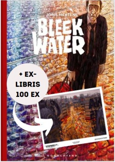 Ongewone topklasse François is geen held. François is gewoon... François. Gewoon. Sinds jaar en dag werkt hij voor een stomerij, een droogkuis, waar hij vuile was ophaalt en die later proper terugbrengt. Iemand moet het doen en François doet dit gewoon graag, correct, plichtsbewust en met een glimlach. François lijkt de vleesgeworden oppervlakkigheid te verpersoonlijken, maar wie de man beter kent, weet dat hij een echte dromer is. Hij droomt ervan de lotto te winnen. Met een hardnekkige verbetenheid speelt hij al jaren met dezelfde getallen, want ooit zal hij winnen. Dat is gewoon een zekerheid, zijn houvast. En als hij wint, zal hij een gezin stichten. Dan koopt hij een huisje voor de sympathieke krantenkioskdame Maryvonne en haar dochtertje Romy. Gewoon omdat het kan. Gewoon omdat het plaatje dan voor François klopt. Romantiek, liefde en al die vleselijke toestanden lijken niet aan hem besteed. Het is François om de mentale rust en de zekerheid te doen. Intussen vult hij zijn vrijgezellenleventje met een sigaretje te roken, naar de bios te gaan en een pintje te pakken in zijn stamkroeg. Maar de laatste tijd wordt zijn gewone leventje steeds ongewoner. De bazin heeft immers haar omhooggevallen neefje Alain meegestuurd op leveringsronde. Gewoon om de stiel te leren. De onrust borrelt. En dan doen gewone mensen ongewone dingen. Zelfs François. Bleekwater is een donker verhaal over melancholie, de tristesse van de grootstad en foute keuzes. Voor de doorsnee mens zijn dit al genoeg argumenten om gillend weg te lopen. Maar tekenaar Joris Mertens is gene gewone. Als geen ander kent de man van Rumst zijn sterktes. Hij speelt ze perfect uit, verlegt elke pagina zijn grenzen en weet ons terloops te charmeren met zijn humor. Net als in zijn debuut Beatrice kiest Mertens voor een grauwe stad uit midden jaren 1970 met flarden Brussel, Antwerpen en Parijs. Elke lezer herkent er zijn vuile, eclectische (hoofd)stad in. In die stad, die snel om zeep lijkt te gaan, zoekt Mertens naar grafische schoonheid. Neonlichten weerspiegelen continu in de natte straten. Statige gebouwen contrasteren maximaal met de onrustige tred van de doorregende François. Elke plaat is een pareltje. Dit is Brussels by Night op zijn best. Wie even doorgraaft, ontdekt bovendien verschillende soorten humor. De neonreclames zijn heerlijke woordspelletjes van Assurances Brollex tot Xenix. Een man die werkt in een droogkuis een heel verhaal laten rondlopen in de regen als een verzopen kieken, is het toppunt van ironie. De personages zeggen niet veel, maar suggereren des te meer. En als ze toch iets zeggen, baden de knetterende dialogen vaak in cynisme. Het einde is sarcasme om duimen en vingers bij af te likken. Want vergis je niet, Bleekwater is perfect opgebouwd. Niets is toeval. Het verhaal staat als een huis. Meer nog, Bleekwater heeft twee verhalen. De eerste 70 pagina’s kabbel je mee in François’ lege leven. Je wil hem wakker schudden, maar tezelfdertijd geniet je van de man. Dit is gewoon een ongewone prachtstrip. Maar net als je denkt dat dit het is, doet Mertens een Hitchcock. Hij laat zijn gewone man iets ongewoons beleven. En plots zit je op het puntje van je stoel en beland je in een heuse actiefilm. Het einde is ronduit magisch. Vanaf pagina 105 verbluft Joris Mertens je met een dik twintig pagina’s lang travelling shot. Die pagina’s zijn zo mooi. Pure cinema. Inderdaad, cinema. Bleekwater is een strip gemaakt door iemand die perfect weet hoe beeldtaal werkt. Dat hoeft je niet te verbazen. Dik vijfentwintig jaar was Mertens actief binnen de Vlaamse filmwereld. Maar zijn goesting om zelf zijn eigen verhaal te vertellen, met al zijn vakkennis en los van budget- en artistieke beperkingen, dreef hem naar de negende kunst. Gelukkig. Bij onze zuiderburen won zijn tekstloze Beatrice de ene prestigieuze (debuut)prijs na de andere. Bij ons bleef het eerder kalm rond de man, maar dit zal niet lang meer zo blijven. Dit is een absolute doorbraakstrip. Als je maar één strip koopt dit jaar, laat het dan deze Bleekwater zijn. Bleekwater is ongewone topklasse.