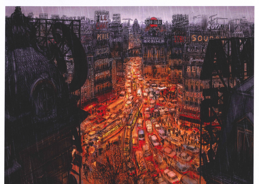 De Lotto winnen, we dromen er allemaal al wel eens van. En dan gaan we over tot de orde van de dag. Voor François is dit: de was ophalen en terug netjes thuisbezorgen. Als hij ooit wint, dan zullen Maryvonne - van de krantenkiosk - en haar zieke dochtertje, Romy (astma), er wel bij varen. Zij mogen in dat geval een nieuw huis verwachten. En de warmte van François. Maar de routine van François komt in gevaar. Alain, de neef van bazin madame Clerckx, moet opgeleid worden en rijdt een tijdje mee. Zal Alain hem binnenkort vervangen? Nog meer eenzaamheid dreigt. Of kan het geluk ook onverwacht opduiken? Van een plottwist gesproken! Dit alles in een fictieve stad (Antwerpen, Brussel, Parijs) - vul maar in - waar het eeuwig lijkt te regenen. We herkennen de Antwerpse Boerentoren en het Centraal Station. François is dus nooit 'droog', maar altijd 'drijfnat'. Toch is de titel niet 'Droogkuis' geworden, maar wel 'Bleekwater' (javel). In tegenstelling tot het vorige werk van Joris Mertens - Beatrice (2019) - is er nu wel tekst, maar het is de sfeer die de hoofdrol speelt. Prachtige prenten met lichtgevende neonreclames. We werden nat tijdens het lezen. Het verhaal werd geïnspireerd door de Franse film noir 'Le Circle Rouge' (1970) met Alain (!) Delon en Bourvil. De naam van het dochtertje komt natuurlijk van Romy Schneider. Op pagina 62 merken we een affiche op van 'Le Vieux Fusil' (1975). Niet voor niets dus. Je kan leuke details blijven opmerken: 'Taxi Driver' (1976) van Martin Scorsese speelt in de cinema; Mannix (1967-1975) met Mike Connors speelt op televisie; Er is een cameo van Marc Didden (regisseur van Brussels by Night) en in de reclame zit heerlijke humor verborgen: Schtinck cigarillo's, Prott televisie, Glou Glou (zie Guust Flater) i.p.v. Martini,... Joris Mertens was in een vorig leven graficus en set designer, maar koos gelukkig voor ons voor strips schrijven en tekenen.