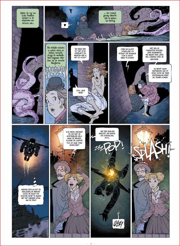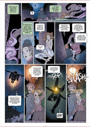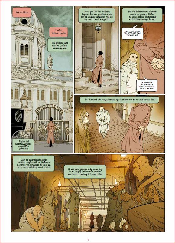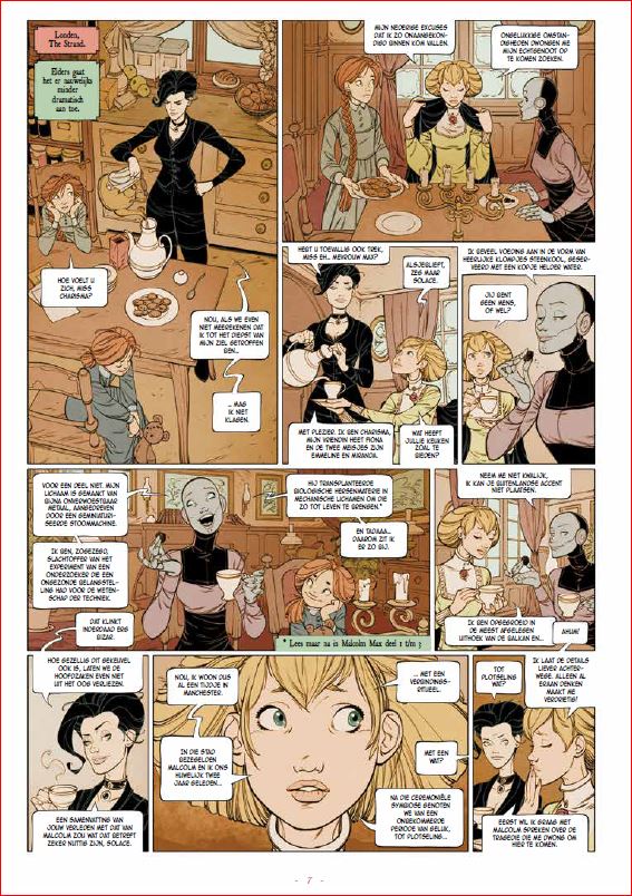 Score moyen 5 / 5Trop is niet te veel Je hebt strips en je hebt strips. En dan heb je nog Malcolm Max. Een straffer buitenbeentje heb je waarschijnlijk nog niet gelezen! Malcolm Max is een intelligente Victoriaanse charmeur die problemen oplost bij paranormaal begaafde personen die verwikkeld zijn in kwaadaardige zaken. In zijn onderzoeken wordt hij bijgestaan door twee buurmeisjes van ene Sherlock Holmes, een dyslectische androïde met journalistieke ambities, en de halfvampier Charisma Myskina die even mooi is als impulsief. Natuurlijk doet er ook nog een macho politie-inspecteur mee die door het eufemistisch verbond zou omschreven worden als niet snugger". Zijn jonge assistent waant zich een superheld en redt ’s nachts als een Victoriaanse gevleugelde wreker weduwen en jonge wichten van vurig gespuis. Opwindender en romantischer kan niet meer. Oh ja, de echte hoofdrol is weggelegd voor een verteller die barokke teksten op ons los laat. Of wat dacht je van zalige zinnen als: “Er zijn nog heel wat taalkundige ontwikkelingen nodig om de vreselijke paniek van de inspecteur in een voldoende passende woordenschat uit te kunnen drukken” of “Hun bestaan kent eenzelfde soort eentonigheid als een hypotenusa in een gelijkbenige driehoek.” En dan is er nog het ongelofelijke verhaal van bezeten vrouwen, buitenaardse monsters in de riolen en telepathisch begaafde vampieren. Kortom, het komt er gewoon op neer dat deze wonderlijke bende moet uitzoeken of er ooit ergens ter wereld nog gevallen zijn geweest van exhibitionisme, gecombineerd met kannibalisme en waanzin. Hallo, ben je er nog? Ja, dan ben je waarschijnlijk de lezer waar de Duitse auteur Peter Menningen op zoek naar is. Je zal er absoluut geen spijt van krijgen. Hoe van de pot gerukt dit begin van een nieuw drieluik ook lijkt, Bloedroes is echt wel een boeiende detectivestrip die steek houdt. Meer nog, eenmaal je je oogkleppen hebt afgezet, is het maximaal genieten van de woordkunst en ongebreidelde fantasie van de scenarist die ooit zijn tijd verloor met het schrijven van Bessy’s. Bij deze willen we een pauwenpluim geven voor vertaler Ben Kamphuis die ook nu weer de juiste balans vond tussen de Duitse Gründlichkeit en de Britse tongue-in-cheek! Het literaire enthousiasme zet zich naadloos verder in de toegankelijke tekeningen. De Duitser Ingo Römling (Star Wars Rebels) gooit zich in haast elk plaatje. Zijn zwierige camerastandpunten contrasteren lekker met de stijfdeftige Victoriaanse setting. Het totaalplaatje klopt. Dit is echt volop genieten. Malcolm Max is in allemaal zo over-the-top dat dit gedoemd lijkt te mislukken. Maar om een of andere reden, pakt de mayonaise en wordt de reeks steeds populairder. Dit is grappig, spannend en knap getekend. Malcolm Max is een machtig buitenbeentje in het steampunkgenre. Te ontdekken! Tegelijk met deze start van de tweede cyclus verscheen ook een pakket van de eerste cyclus."