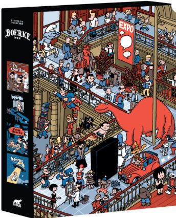 Een exclusieve box met prachtige illustraties van het stripmuseum met alle bekende stripfiguren. Pieter De Poortere (1976) debuteert in 2001 met het woordloze Boerke, dat onmiddellijk hoge ogen gooit door de unieke kruising van Pieters cynische humor en zijn onschuldige tekenstijl. Hij ontvangt dan ook meteen de prijs voor beste Nederlandstalige album van het jaar. De reeks wordt gepubliceerd in de Nederlandstalige pers in Focus Knack, en de Franse pers (Fluide Glacial, Le Monde, Ferraille Illustré, L'Echo des Savanes). Deze box bestaat uit De zoon van, Hollywood, Space en Prins Boerke.