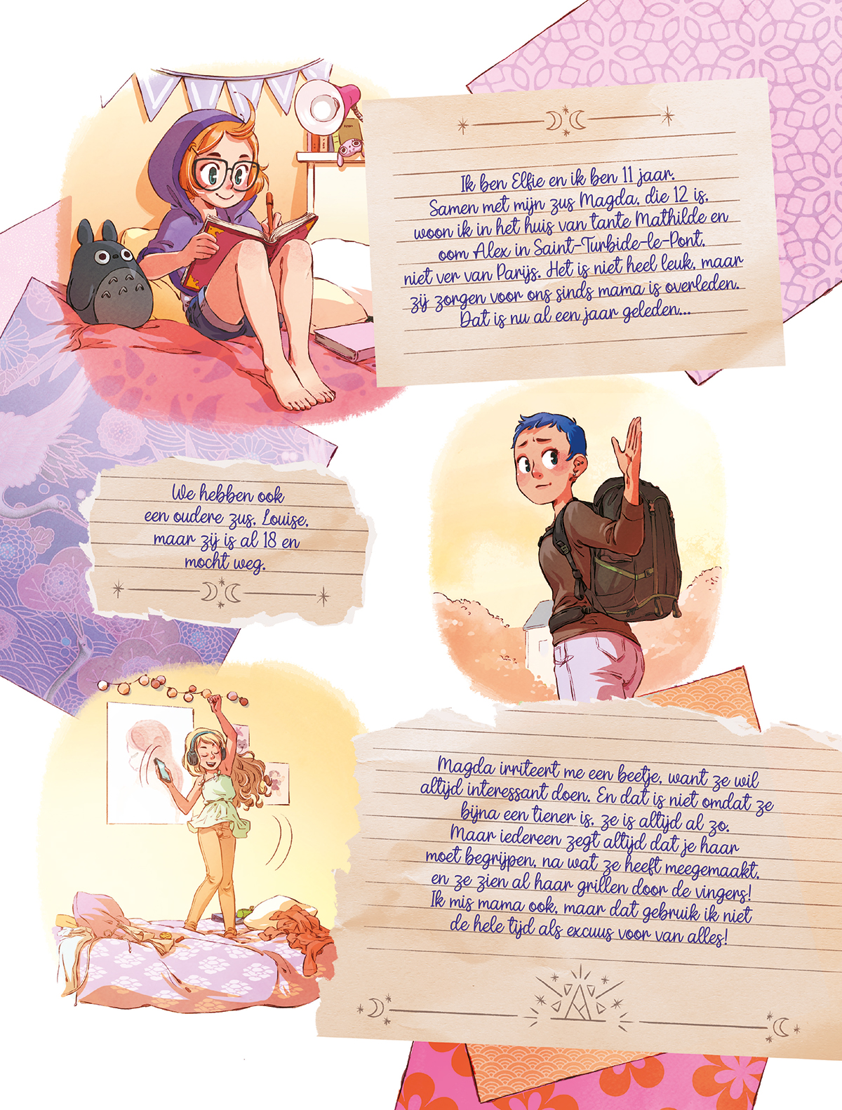 Sinds hun moeder is overleden wonen Elfie en Magda bij hun chagrijnige tante. Maar dan komt hun oudste zus terug uit Londen. Ze heeft een dubbeldekker omgetoverd tot mobiele boekwinkel om ermee van dorp naar dorp te rijden. Dat is de start van een nieuw leven! Hun eerste stop is op een Bretons eiland waar een oude ruzie vanwege een geheimzinnige verloren gegane postzegel de bevolking bezighoudt. Bovendien ontdekt Elfie dat ze het talent voor magie van haar moeder heeft geërfd, samen met een magisch boek dat ze moet voeden met haar verhalen… Het magieboek van Elfie is een lief en avontuurlijk verhaal over de mysteries en charme van het dagelijks leven, geschreven door Christophe Arleston en Audrey Alwett. Een absolute aanrader voor lezers van Het dagboek van Cerise.