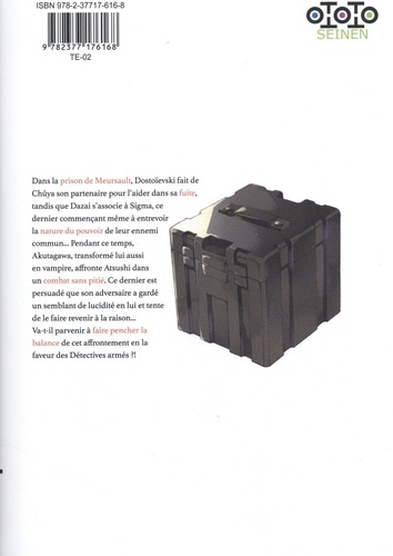 Dans la prison de Meursault, Dostoïevski fait de Chûya son partenaire pour l'aider dans sa fuite, tandis que Dazai s'associe à Sigma, ce dernier commençant même à entrevoir la nature du pouvoir de leur ennemi commun... Pendant ce temps, Akutagawa, transformé lui aussi en vampire, affronte Atsushi dans un combat sans pitié. Ce dernier est persuadé que son adversaire a gardé un semblant de lucidité en lui et tente de le faire revenir à la raison... Va-t-il parvenir à faire pencher la balance de cet affrontement en la faveur des Détectives armés ? !