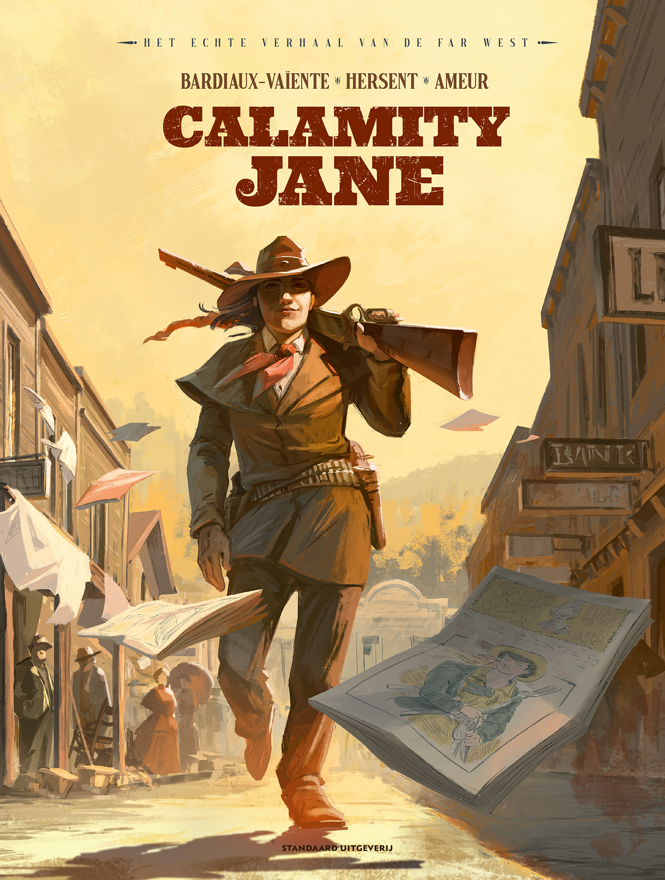 Marie Bardiaux-Vaïente situe l’histoire à Deadwood en 1876, dépeignant une femme audacieuse défiant les conventions sociales : elle boit, s'associe aux Noirs et ne craint pas de s’opposer aux normes de son époque. Entre récit et segments fabuleux sur ses prétendus exploits militaires et confrontations avec les desperados, l’autrice dévoile une héroïne complexe, souvent bien éloignée de ses propres légendes, reléguée à des tâches subalternes dans une réalité plus cruelle.