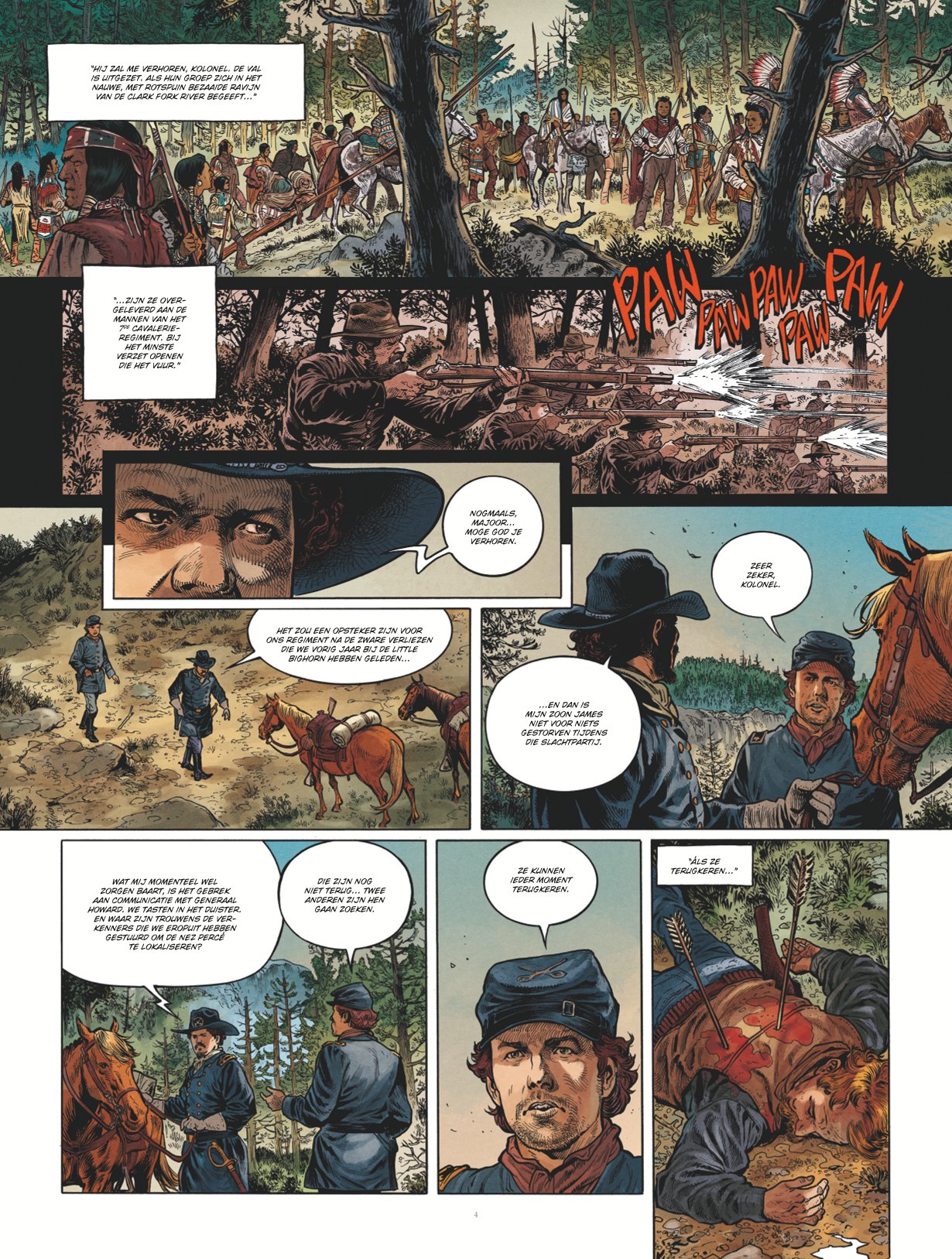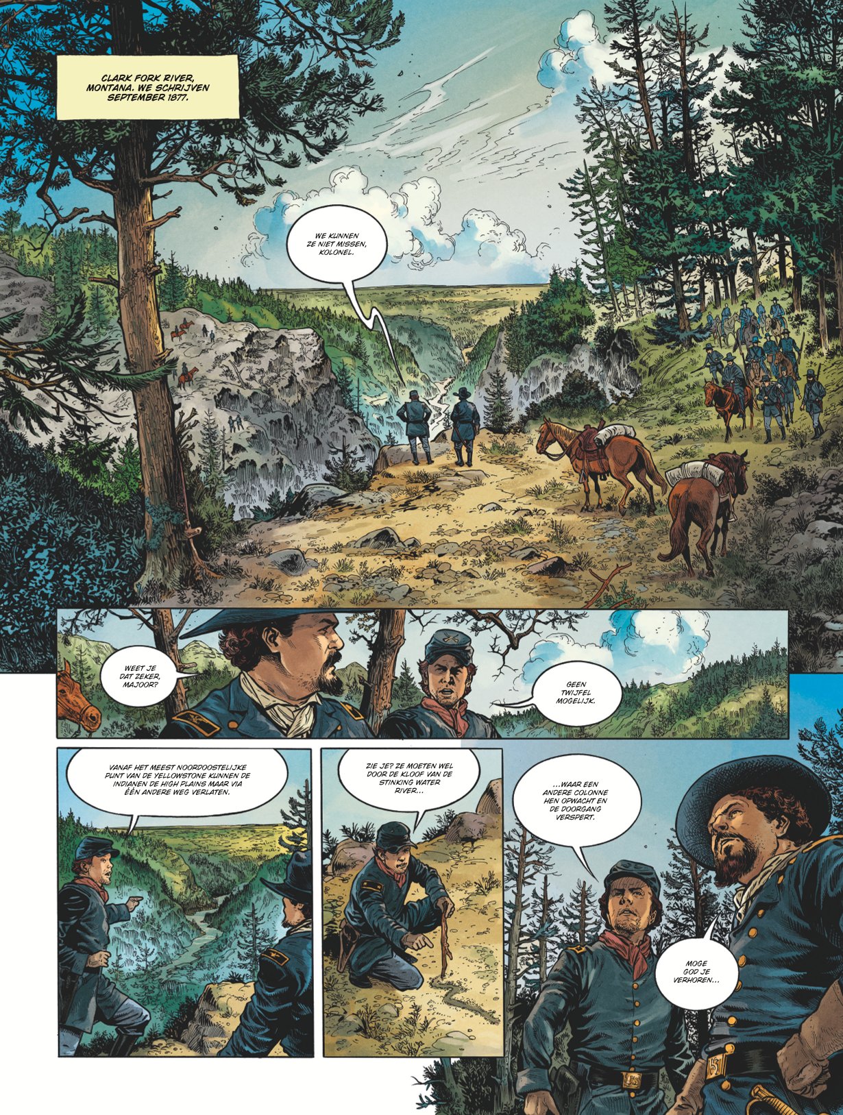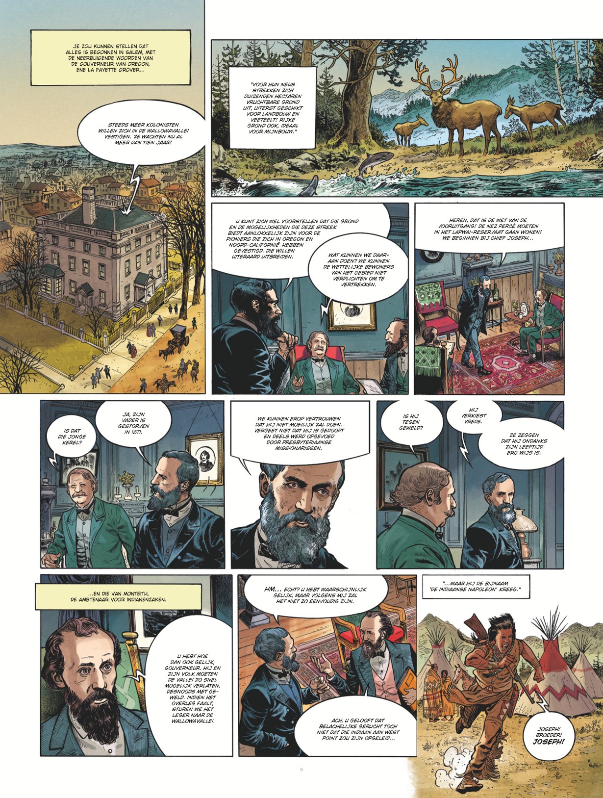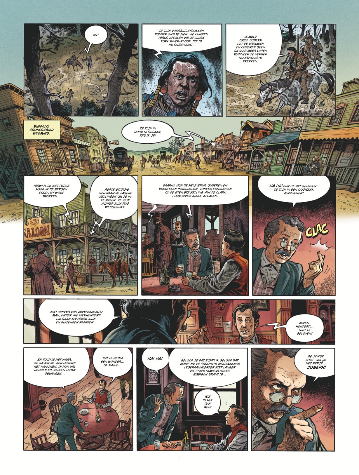 Dit keer is Chief Joseph aan de beurt, de aanvoerder van de Nez Percé-indianenstam. Hij was een wijze man die leiding gaf aan zijn stam tegen het Amerikaanse leger in de periode rond 1877. Opperhoofden als Sitting Bull en Cochise kennen we al uit andere westernreeksen, maar Chief Joseph hadden we nog niet eerder opgemerkt. In het verhaal staan ook de gebeurtenissen vanaf 1877 centraal en leren we hoe de Nez Percés worden verdreven van hun oorspronkelijke leefgebieden. De oorzaak is terug te vinden in blanke kolonisten die zich willen vestigen op de vruchtbare gronden van de indianen waar ook goudaders zitten. Jaren later komen daar ook nog oliebronnen bij. De manier waarop is omgegaan met de oorspronkelijke bewoners verdient geen schoonheidsprijs. Dat maakt dit album ook interessanter dan menig andere western. Hier maken we kennis met de ontberingen die de indianen hebben moeten doorstaan.