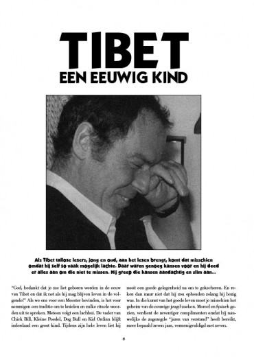 Tibet had drie idolen: Gary Cooper, Laurel en Hardy. Uit deze ongewone combinatie vloeiden via zijn potlood cowboy Chick Bill, de sluwe en ondeugende indiaan Kleine Poedel, de opvliegende sheriff van Wood City Dog Bull en zijn adjudant Kid Ordinn wiens 'Kidordinneries' zo bekend raakten dat het woord in het woordenboek verdient opgenomen te worden. Sinds 1953 vertelde Tibet, die sneller tekende dan zijn schaduw, hun avonturen in zeventig albums. De in Marseille geboren Brusselaar gaf hierin zijn persoonlijke visie op de Far West. Deze integrale reeks presenteert deel na deel alle verhalen met onuitgegeven artikels, illustraties en foto’s als extraatjes. In de achtste integrale van Chick Bill staan de verhalen De Gier van Wood City, De Waterkoorts, het tweeluik Cowboys tegen Musketiers en Het Teken van de Graaf, Grapjassen Werden Gapjassen… en de Sheriff Keek Toe en Het Raadselachtige Tibet. Het dossier somt anekdotes en herinneringen op van de grapjas in Tibet. Maar liefst zes komische westernavonturen!