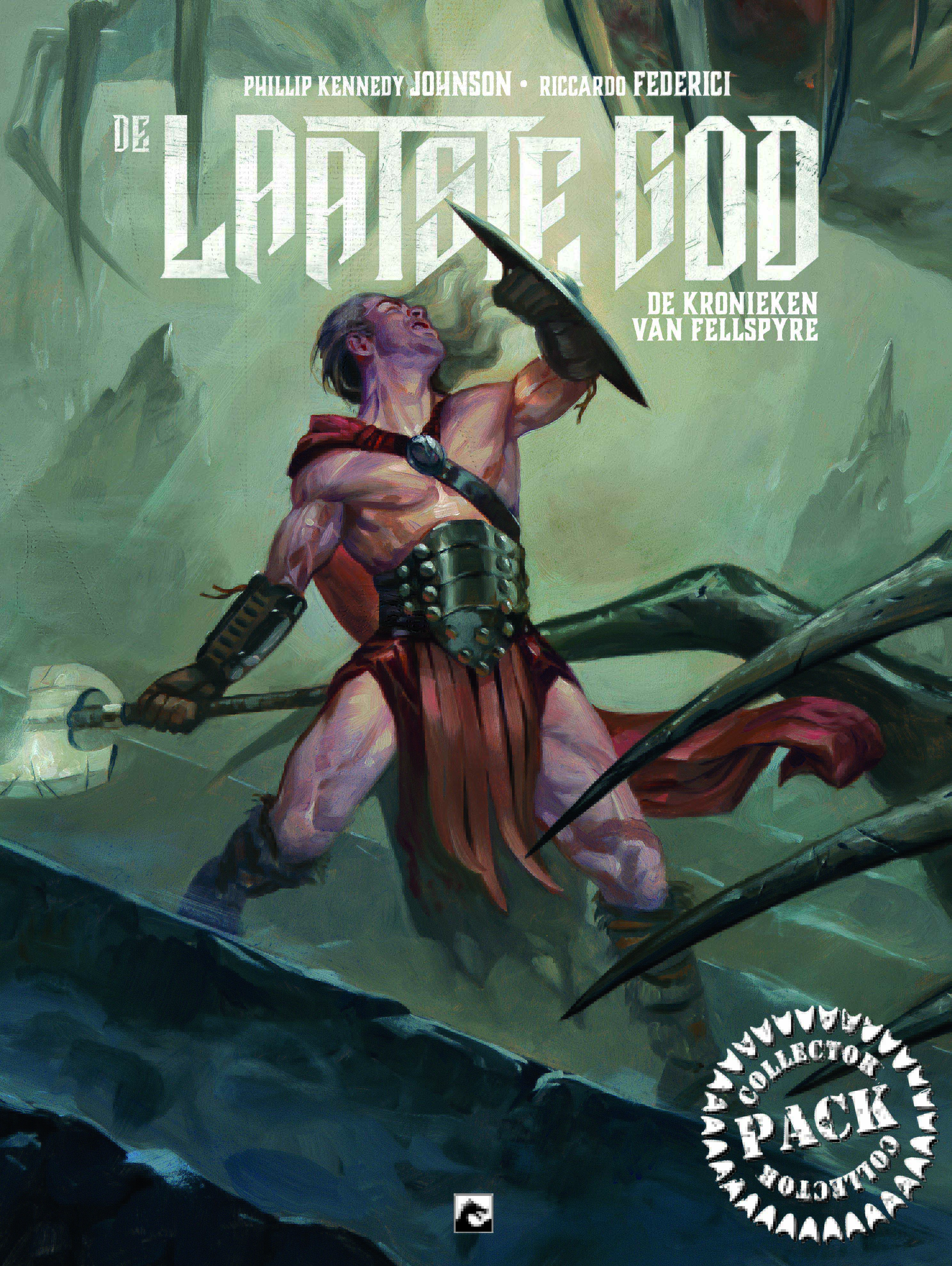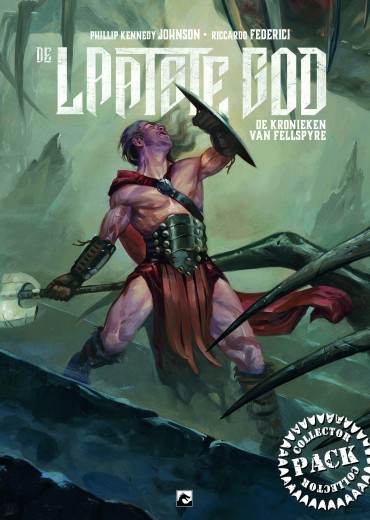 Dertig jaar geleden trok een groep dappere helden uit Cain Anuun voorbij de grenzen van het bestaan. Ze doodden de laatste nog levende god en redden de wereld van zijn apocalyptische leger. De leden van het legendarische gezelschap werden de leiders van de wereld en luidden een nieuw tijdperk in van vrede en welvaart. Maar daar komt nu een einde aan... De laatste God, de Fellspyre kronieken Tekst: Philip Kennedy Johnson Tekeningen: Riccardo Federici Saria ISBN: 9789464600834