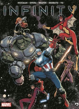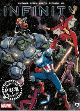 herdruk 02/2044 GROOT, GROTER... ONEINDIG! Thanos is weer terug! De legers van de dwaze Titaan slaan de eerste slag in een intergalactische oorlog die niet alleen op aarde, maar ook in de ruimte wordt uitgevochten... met de Avengers tussen twee vuren. En terwijl de creatiebommen op aarde actief worden, doen de Builders hun intrede. Kunnen de Avengers de wereld redden of worden de plannen van Thanos werkelijkheid?