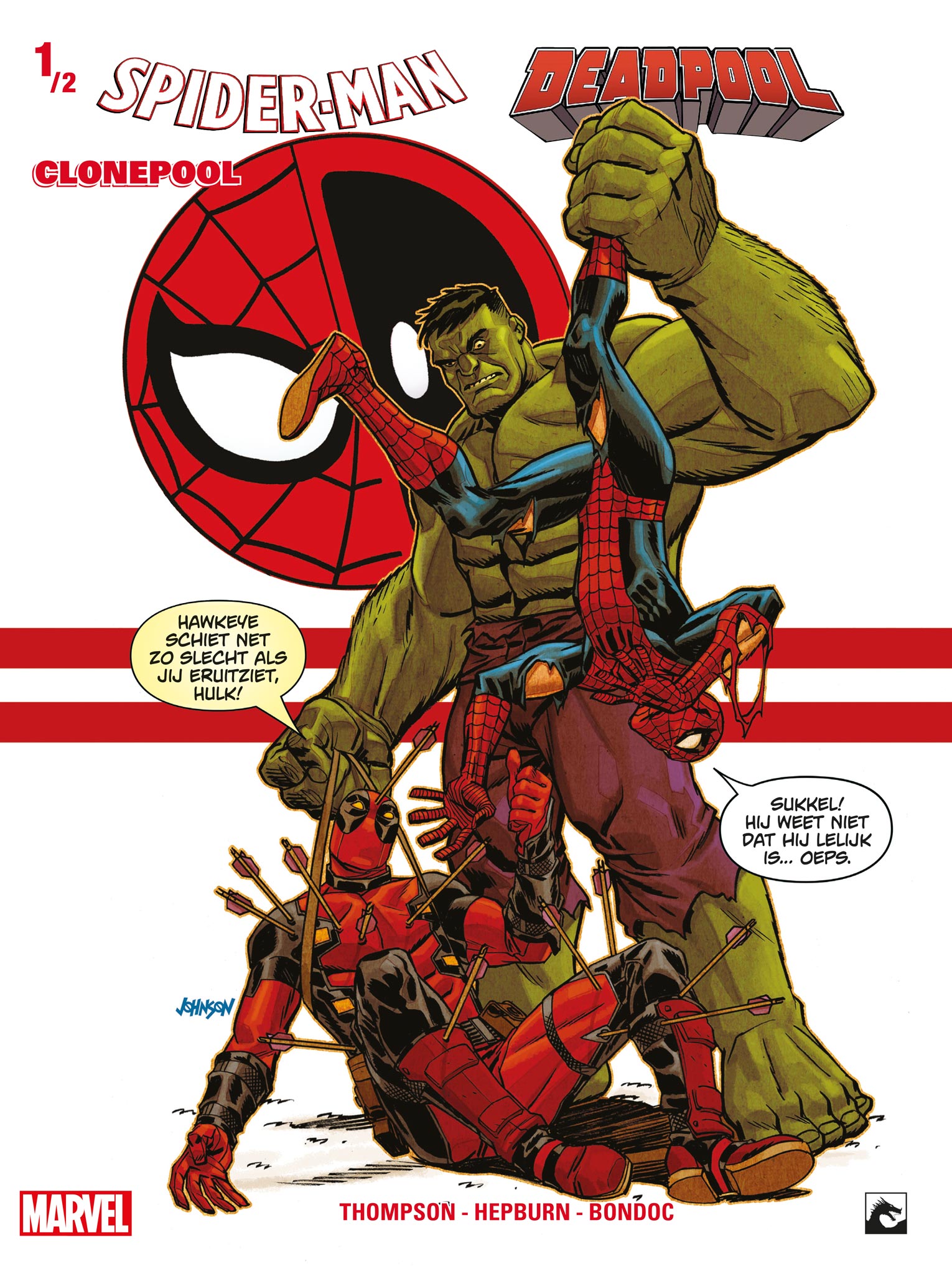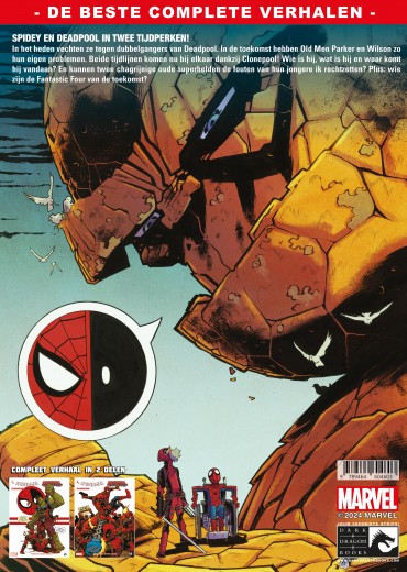 Spidey en Deadpool slaan de handen ineen in twee tijdperken! In het heden worden ze geplaagd door Deadpool dubbelgangers, terwijl in de toekomst Old Men Parker en Wilson hun eigen problemen hebben! Deze twee tijdlijnen staan op het punt te botsen, dankzij Clonepool! Wie is hij, wat is hij en waar komt hij vandaan? En hebben twee mopperige oude helden een kans om de fouten van hun jongere zelf recht te zetten wanneer ze ook geconfronteerd worden met tientallen Doppelpools? Ondertussen hebben de acties van ons duo in het heden ernstige gevolgen. Serieus, gevolgen van het kaliber ‘Oorlog-met-alle-superhelden-van-het-Marvel-Universe’. Spider-Man Deadpool, Clonepool Tekst: Robbie Thompson Tekeningen: Scott Hepburn Clonepool ISBN 1: 9789464604603 Softcover 64 blz.