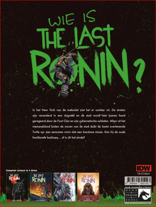 16/04/2024 In het New York van de toekomst ziet het er somber uit. De straten zijn veranderd in een slagveld en de stad wordt met ijzeren hand geregeerd door de Foot Clan en zijn cybernetische soldaten. Maar uit het niemandsland buiten de muren van de stad duikt de laatst overlevende Turtle op: een eenzame ronin met een kansloze missie. Kan hij de oude familievete beslissen... of is dit het einde? Teenage Mutant Ninja Turtles The Last Ronin Tekst: Kevin B. Eastman, Peter Laird, Tom Waltz Tekeningen: Esau Escorza, Isaac Escorza