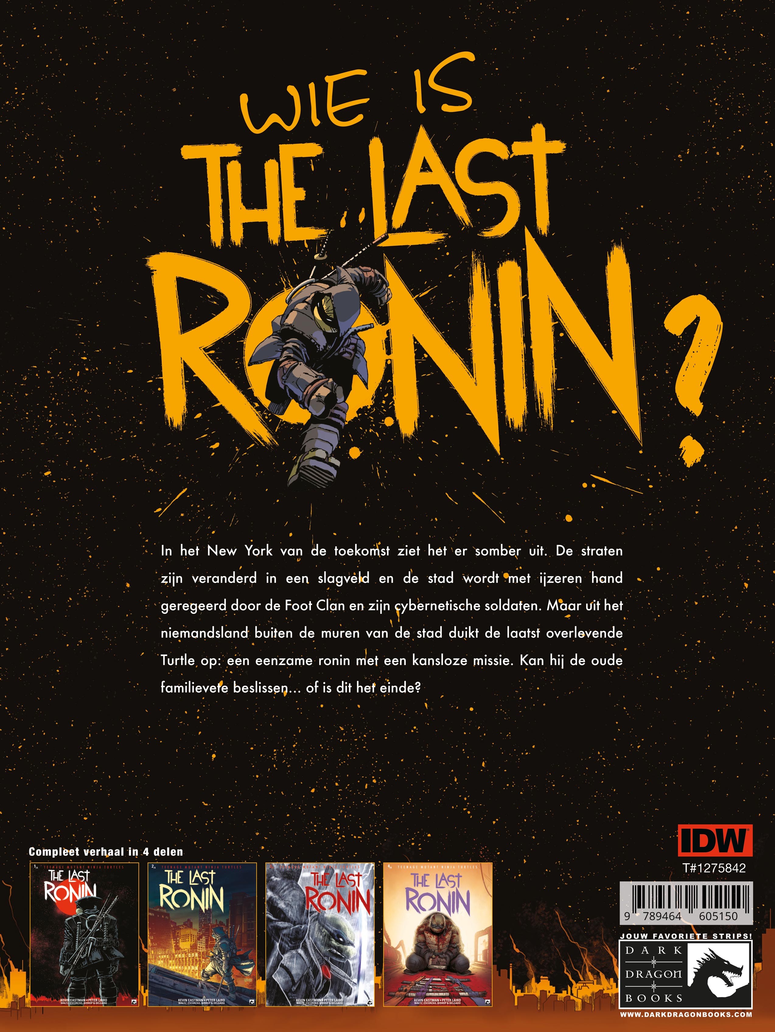 16/04/2024 In het New York van de toekomst ziet het er somber uit. De straten zijn veranderd in een slagveld en de stad wordt met ijzeren hand geregeerd door de Foot Clan en zijn cybernetische soldaten. Maar uit het niemandsland buiten de muren van de stad duikt de laatst overlevende Turtle op: een eenzame ronin met een kansloze missie. Kan hij de oude familievete beslissen... of is dit het einde? Teenage Mutant Ninja Turtles The Last Ronin Tekst: Kevin B. Eastman, Peter Laird, Tom Waltz Tekeningen: Esau Escorza, Isaac Escorza