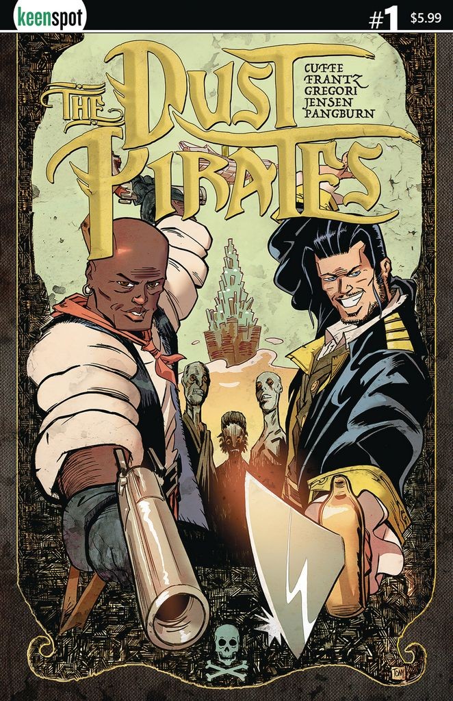 Ysennia, a revolutionary water mage, transports two dashing pirates-the quick-witted and charming Blackheart Sam Bellemy and the tough and thoughtful Quinitor-from 1790s Earth to a desert world known as Atlantis in a desperate attempt to save its people from Xsicor, the tyrannical emperor of Atlantis. The Dust Pirates is a swashbuckling, high-adventure epic from the creative team of writers Kevin Cuffe and Bob Frantz (Metalshark Bro, Skeeters, Spirit of 666), artist Tony Gregori (The Worst Dudes, TMNT, Ancient Noise), colorist Josh Jensen (Ninja Nuns), and editor/letterer Chas! Pangburn (Spider Kind, Metalshark Bro).