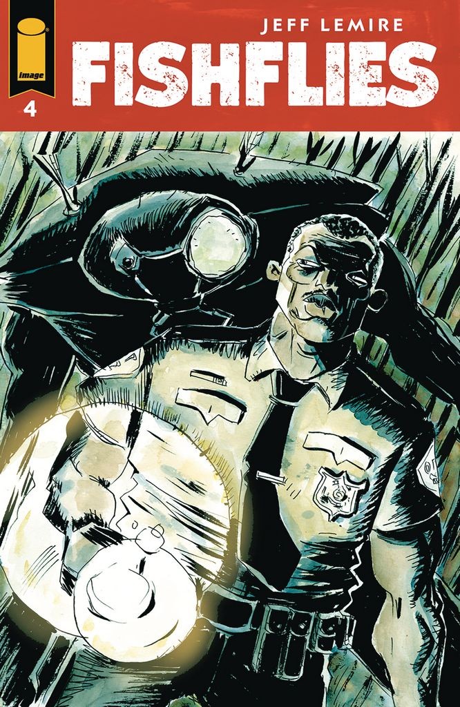Francis Fox and her new friend attempt to escape their hiding place on her father's farm while Helen DuPuis is visited by her own strange visitor in the hospital. Will Helen find out who shot her son Paul or will she lose even more of her tenuous grip on reality? An extra-special oversized issue from Jeff Lemire (Gideon Falls, Sweet Tooth) of a new tale of small-town surrealist horror.