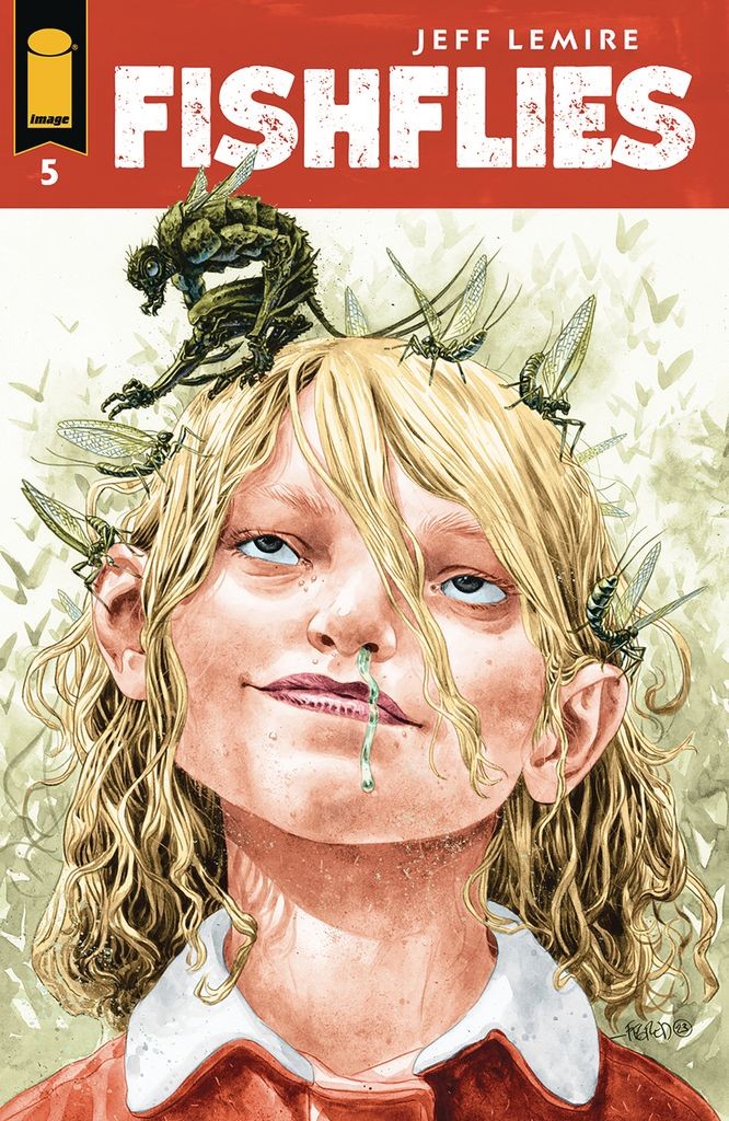 Franny and the bug seek shelter at a farmhouse with two elderly siblings. Elsewhere, Helen DuPuis finds a strange symbol in the woods that she' determined is the link between all the mysteries, while Officer Laraque finds a lead of his own that might bring Francis Fox home safely. A special extra-length issue from JEFF LEMIRE (GIDEON FALLS, Sweet_ Tooth)_ deepens the mystery of this small-town surrealist horror.