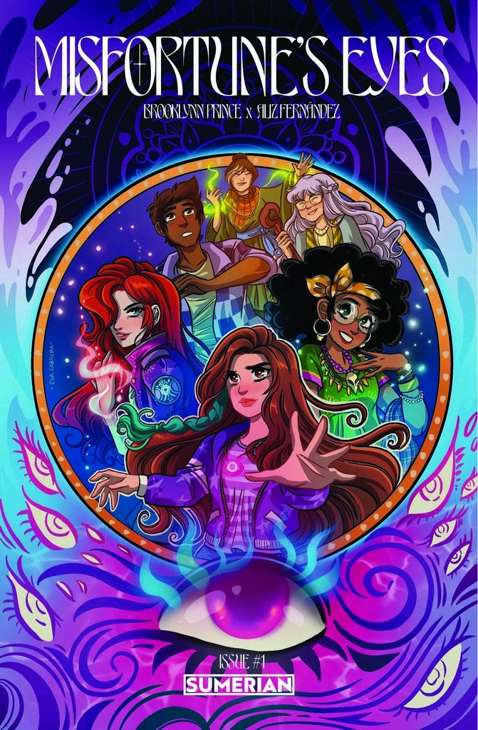 Eisner and GLAAD Award nominee Eva Abrera is the co-founder of Mexican studio BoudikaComics. She drew Archie Comics' Vixens, Black Mask Studio's Kim & Kim, and has done covers for BOOM Studios' Adventure Time comics. Double-Sized debut issue from Critics' Choice Award Winning Actress, Brooklynn Prince (The Florida Project, Cocaine Bear, The Marsh King's Daughter) comes this limited series full of excitement! A teen girl wakes up to discover she can see human auras. While embarking on a journey to find what her future may hold, she uncovers a hidden Psychic Town. There, she will soon learn about her mother's troubled past, her own curse of predicting death, and unearth the immense darkness coming for the town, and her own family.