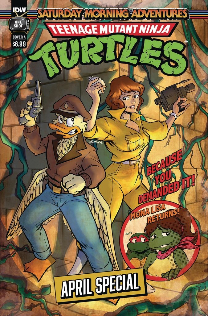 What better month to have a special dedicated to the Teenage Mutant Ninja Turtles' favorite journalist in a jumpsuit? Shredder's been stranded after his plan to acquire a new Technodrome backfired on him, but April still finds herself in a serious situation with the heroes in a half-shell nowhere in sight! Luckily, April doesn't have to adventure alone, as Ace Duck makes his debut, seeking hidden treasure in the Lost Temple of Avila! This adventure will be newsworthy and that's no April fooling! Also, because you demanded it, this 40-page issue features the return of another very special mutant: Mona Lisa!