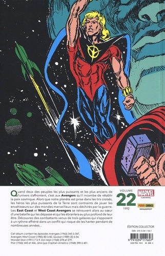 C'est la guerre entre les Krees et les Shi'ars ! Quand deux des plus puissantes et plus anciennes races de la galaxie s'affrontent, seuls les Avengers peuvent tenir le rôle de médiateurs ! Les héros de la côte ouest et ceux de la côte est s'unissent pour une aventure cosmique qui les transformera à jamais. Et qui l'emportera entre Thor et Gladiator ? Cette gigantesque saga implique les deux équipes d'Avengers en fonction au début des années 90, et comme tout bon crossover, les séries individuelles des héros participent à l'intrigue. Vous trouverez ainsi des épisodes des séries Quasar, Wonder Man, Iron Man, Thor et Captain America pour une saga cosmique, jamais publiée en France jusqu'à aujourd'hui !