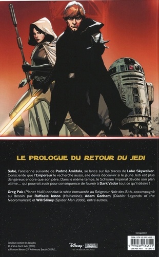 Le pouvoir ultime est à la portée de Dark Vador lorsque... Luke Skywalker se tourne vers le côté obscur ? ! On dit qu'il ne peut y avoir que deux Sith. Ce qui est le cas actuellement avec l'Empereur et Dark Vador. Mais après ? Est-ce que ce sera Palpatine et Luke ? Ou Vador et son fils ? Pendant ce temps, le Schisme Imperial révèle ses atouts ! Et aussi : explorez la vie secrète d'Anakin Skywalker avec des histoires inédites se déroulant avant, après et entre les scènes de La Menace Fantôme ! Dernier tome pour la série Dark Vador lancée en 2020. Elle raconte l'histoire du Seigneur Noir des Sith entre L'Empire Contre-Attaque et Le Retour du Jedi.