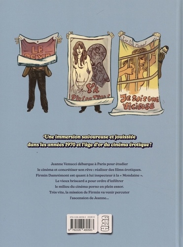 Une immersion savoureuse et jouissive dans les années 1970 et l'âge d'or du cinéma érotique ! Jeanne Venucci débarque à Paris pour étudier le cinéma érotique et concrétiser son rêve : réaliser des films. Firmin Damrémont est quant à lui inspecteur à "la Mondaine" . Le vieux briscard a pour ordre d'infiltrer le milieu du cinéma porno en plein essor. Très vite, la mission de Firmin va venir percuter l'ascension de Jeanne...