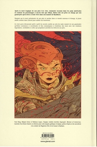 Une histoire fantastique à la croisée du Magicien d'Oz et de Conan le Barbare Après la mort tragique de son père C. K. Cole, un célèbre écrivain de pulps, Helen doit aller vivre dans l'immense propriété de son grand-père, Wyndhorn House. Marquée par cette disparition, la jeune femme perdue et rebelle est projetée dans un monde nouveau. Elle ne le sait pas encore, mais bientôt son existence tout entière va être bouleversée... Un soir, près du bois, elle est attaquée avec sa gouvernante par une créature maléfique qui semble tout droit sortie d'un roman de fantasy ! Brandissant une hache, son grand-père arrive juste à temps pour les sauver. Mais cet accident n'a rien d'anodin. Peu à peu Helen, va se rendre compte qu'à l'extérieur des murs vivent des créatures légendaires semblables à celles qui peuplaient autrefois les récits de son père. Comment est-ce possible ? Commence alors un fabuleux voyage initiatique en compagnie de son grand-père, qui va lui révéler un univers différent de ce qu'elle a connu jusqu'ici. Tom King nous plonge dans le secret et le mystère en ancrant son récit dans un univers fantastique, auquel Bilquis Evely apporte toute sa fantaisie et son talent grâce à son trait onirique, à la fois moderne et précis, qui rappelle la beauté majestueuse des gravures. Une pépite graphique qui nous transporte loin pour une aventure pleine de suspense et de rebondissements.