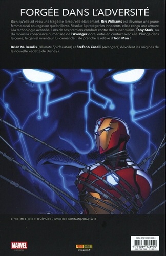Tony Stark est mort, victime de la deuxième guerre civile entre les super-héros. Mais le créateur d'Iron Man est un futuriste, et il a pensé à l'avenir... à la grande surprise de Riri Williams, une adolescente géniale dont Stark a perçu le potentiel. Quand elle hérite de la technologie d'Iron Man, la jeune Riri doit très vite décider ce qu'elle va en faire, car des ennemis de l'Avenger veulent déjà mettre la main dessus ! A l'occasion de la sortie sur Disney+ de la série Ironheart (après l'apparition du personnage de Riri Williams dans Black Panther : Wakanda Forever), nous avons jugé pertinent de rééditer les premiers pas de l'héroïne ! D'autant que cela se fait entre les mains expertes de Brian Michael Bendis (Ultimate Spider-Man) et Stefano Caselli (Ultimate Universe).