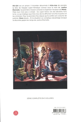 Qui aurait cru qu'un simple ado se transformerait en un véritable super-héros ? Kick-Ass est devenu un phénomène viral, inspirant des dizaines d'imitateurs. Mais les justiciers masqués sont désormais hors-la-loi, et Hit-Girl croupit en prison. Dave Lizewski doit alors reprendre les rênes de Justice Eternelle, son équipe de super-héros. Toutefois une menace redoutable plane : Rocco Genovese, un parrain à l'ancienne dont l'arme de prédilection, un pic à glace plaqué or, porte 99 encoches... chacune représentant une victime. Et il a déjà choisi qui sera la centième. Ce troisième et dernier tome conclut la saga Kick-Ass de Mark Millar (Superman : Red Son, Big Game) et John Romita Jr (Daredevil, Amazing Spider-Man). A noter que le duo fera son grand retour avec une nouvelle série en 2025.