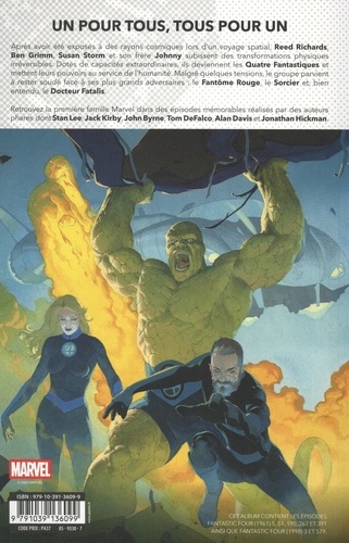 Après avoir été exposés à des rayons cosmiques lors d'un voyage spatial, Reed Richards, Ben Grimm, Susan Storm et son frère Johnny subissent des transformations physiques irréversibles. Dotés de capacités extraordinaires, ils deviennent les Quatre Fantastiques et mettent leurs pouvoirs au service de l'humanité. Malgré quelques tensions, le groupe parvient à rester soudé face à ses plus grands adversaires : le Fantôme Rouge, le Sorcier et, bien entendu, le Docteur Fatalis. Retrouvez la première famille Marvel dans des épisodes mémorables réalisés par des auteurs phares dont Stan Lee, Jack Kirby, John Byrne, Tom DeFalco, Alan Davis et Jonathan Hickman.