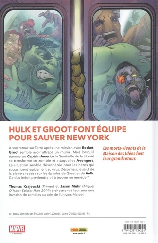 Un nouveau virus zombie contamine les super-héros... et c'est la faute de Groot ! Immunisé contre cette bactérie qui lui fait juste l'effet d'un rhume, il la transmet à Captain America, qui la transmet aux Avengers ! Un autre héros est lui aussi indifférent au virus, c'est Hulk. Ils doivent donc traverser New York (qui est infestée de zombies) pour atteindre l'Avengers Tower et essayer de trouver un antidote. Mais bon, pour que leurs collègues héros puissent guérir, il faut qu'ils survivent à d'éventuels accès de colère de Hulk. Et on sait combien il peut être soupe au lait ! Les sagas Marvel Zombies sont très populaires auprès des fans et celle-ci va particulièrement leur plaire ! Elle a en effet une approche humoristique et nous offre pour la première fois, Groot et Hulk dans la même équipe !